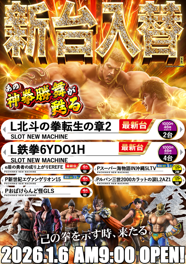 9/13(水)新台入替予定朝9時オープン!新台13機種!