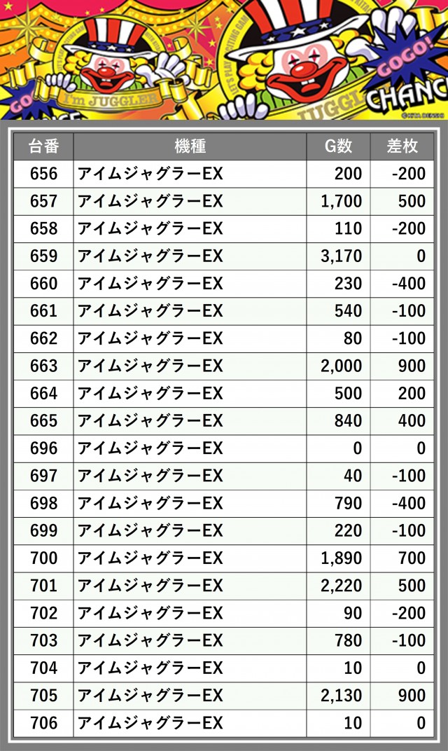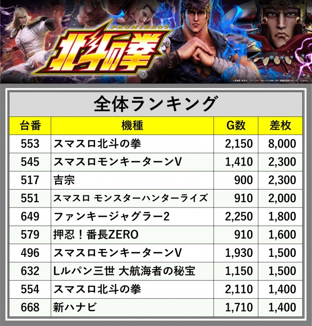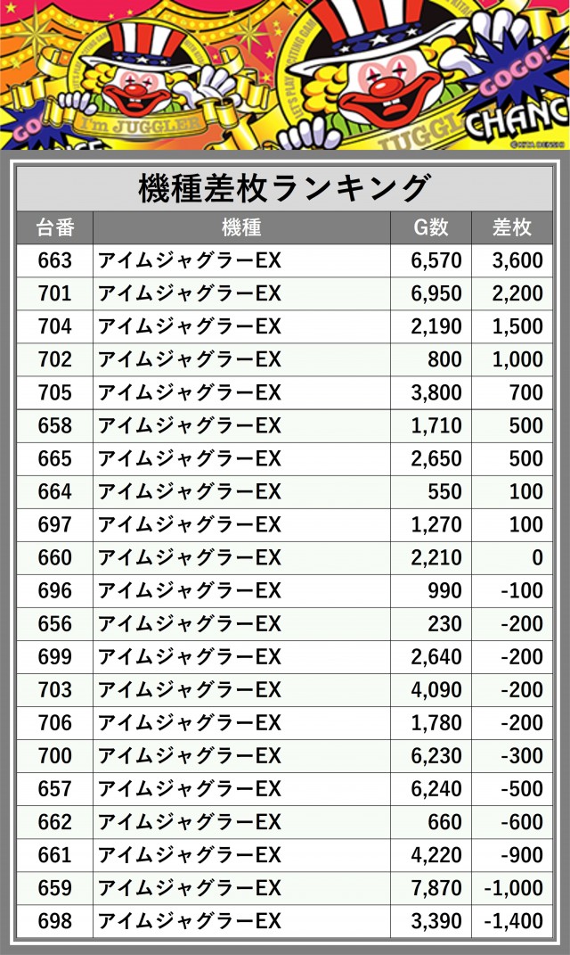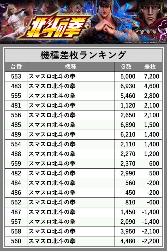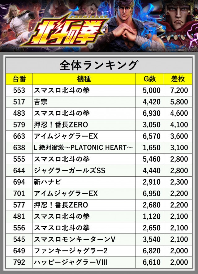 ※差枚数順に掲載しています