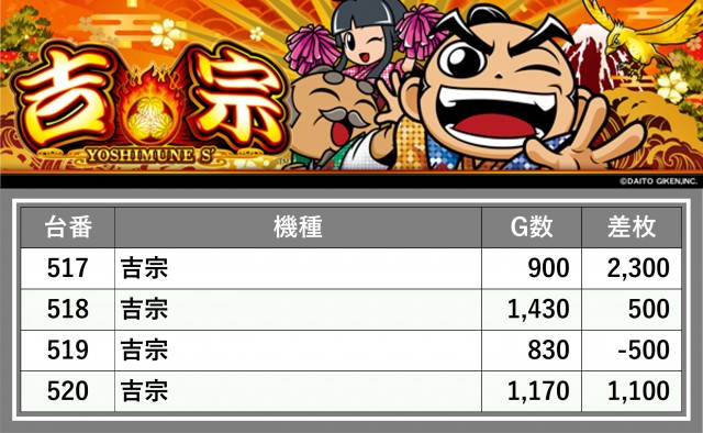 厳選された取材対象機種をはじめ、その他スロット全体から好記録が飛び出した!プレイヤーが楽しんだ1日を下記データにて振り返ってみて欲しい。