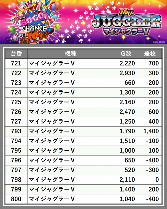 厳選された取材対象機種をはじめ、その他スロット全体から好記録が飛び出した!プレイヤーが楽しんだ1日を下記データにて振り返ってみて欲しい。