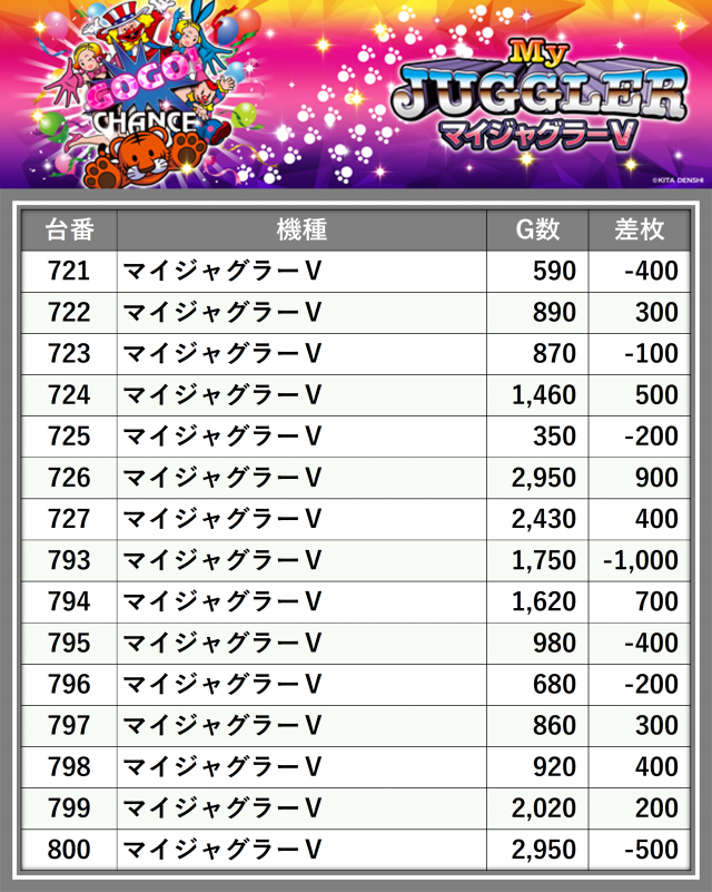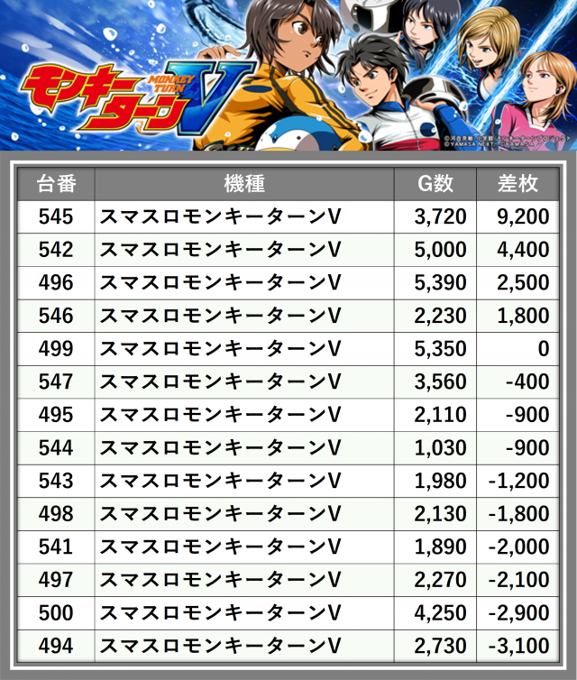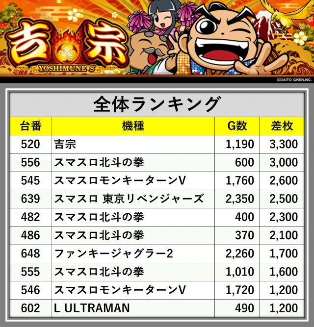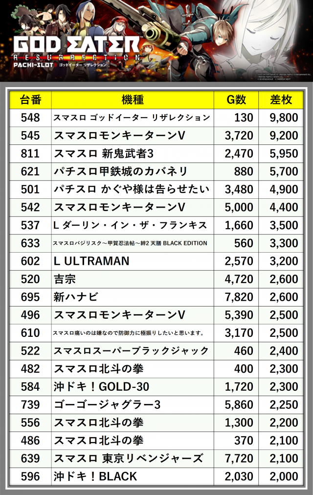 ※差枚数順に掲載しています
