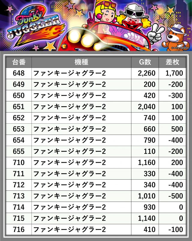 ※台番順に掲載しています