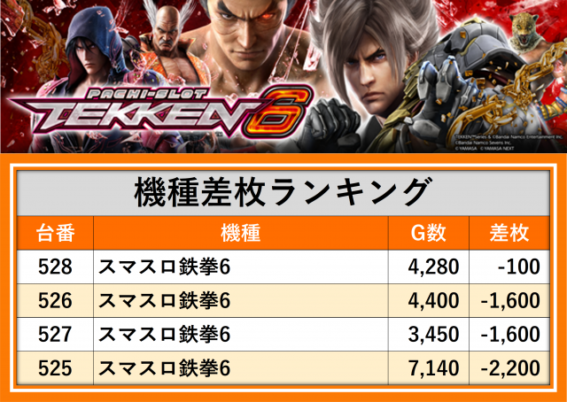 ※差枚数順に掲載しています