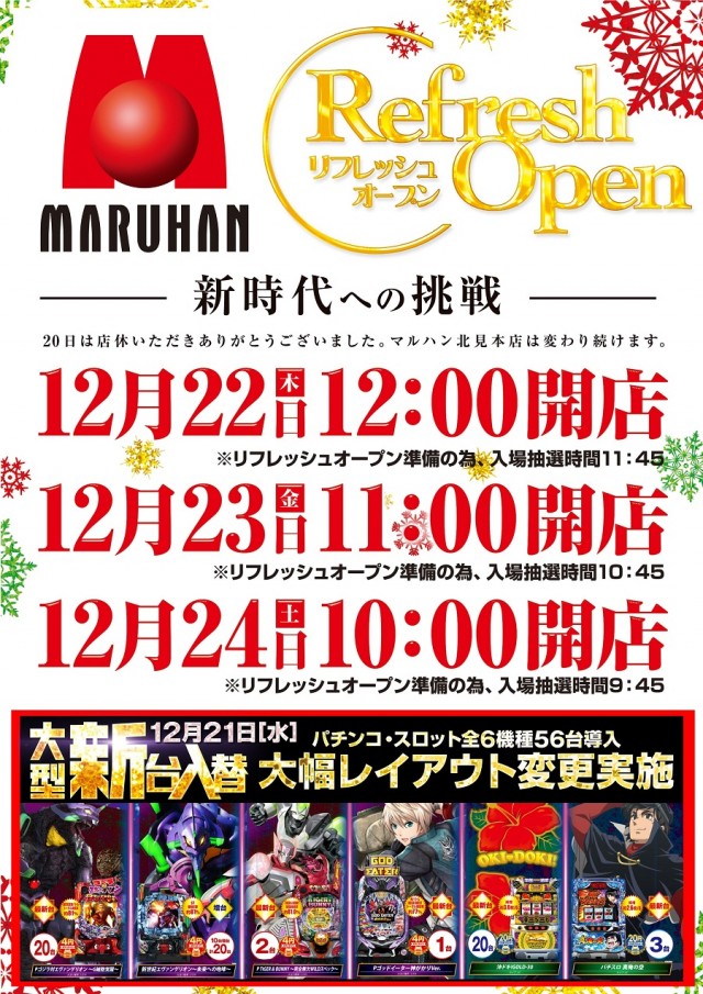 12月7日(水)マルハン全店一斉装飾変更×9時開店!
