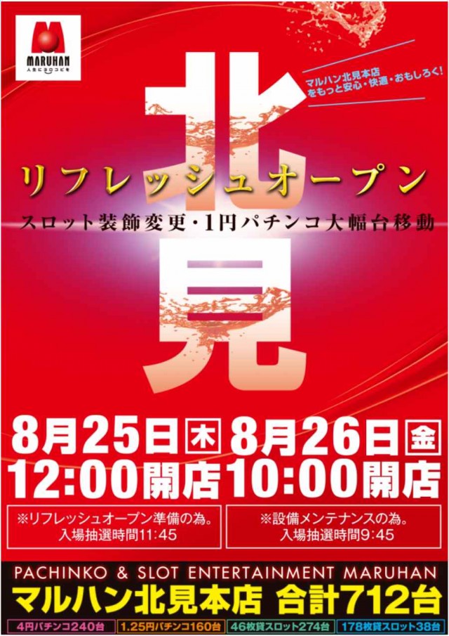 「マルハン北見店」:\リフレッシュオープン12時開店!/