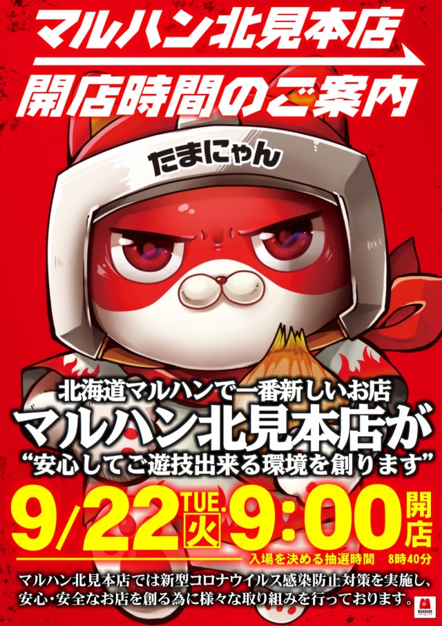 本日26日(土)北海道マルハン全店10時開店 ※地域清掃の為