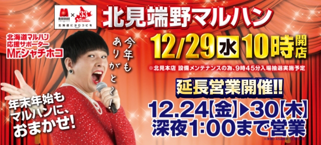 年末年始もマルハンにおまかせ! 明日29日(水)10時開店