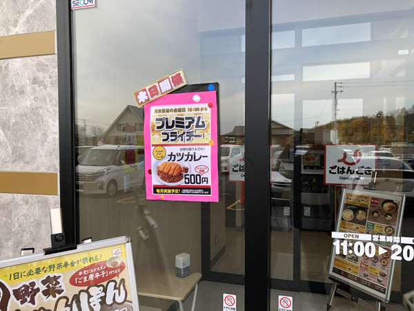 食事処も見逃せない。月末最後の金曜日である今回はカツカレーがワンコイン!
