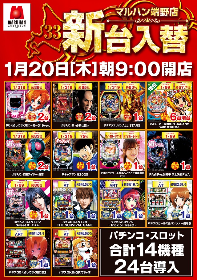 本日1月27日(木)朝9時開店×新台6機種16台導入済‼