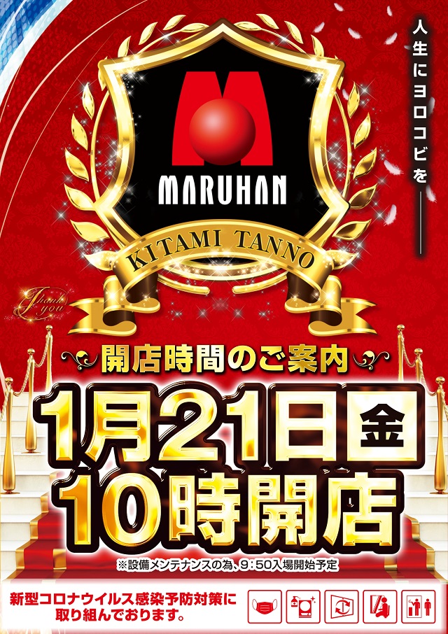 21日(金)10時開店 設備メンテナンスの為 新台導入済み