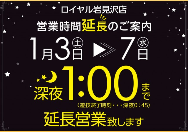 1月3日~7日は深夜1時までの延長営業!ながーく遊べます♬