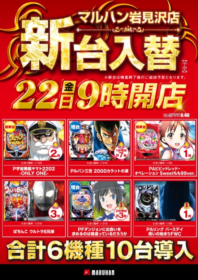 8時40分入場抽選→8時50分再整列→9時入場 ※開店時間が異なる場合は別途お知らせ致します。 |