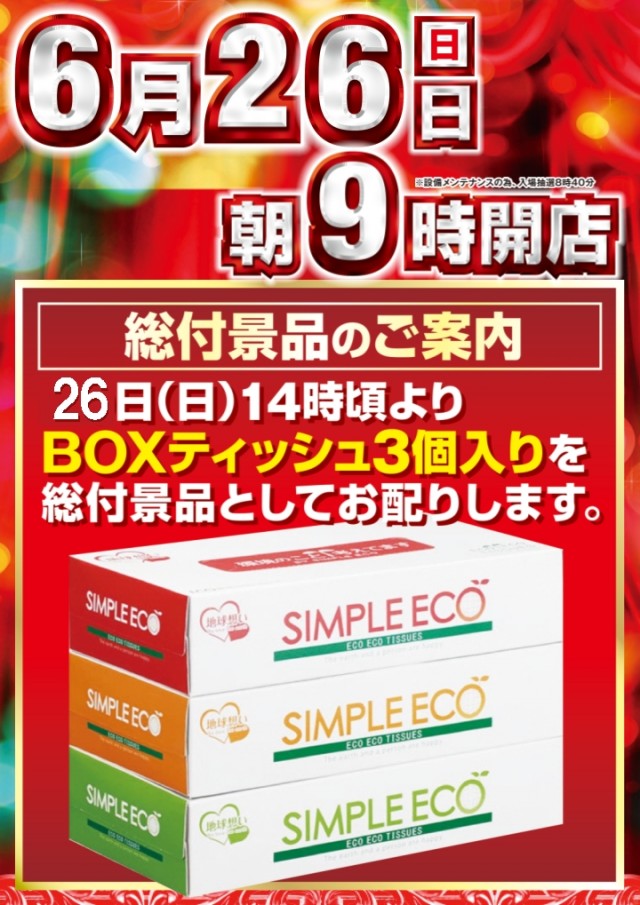 本日【BOXティッシュ3個入】配布(予定)です♪