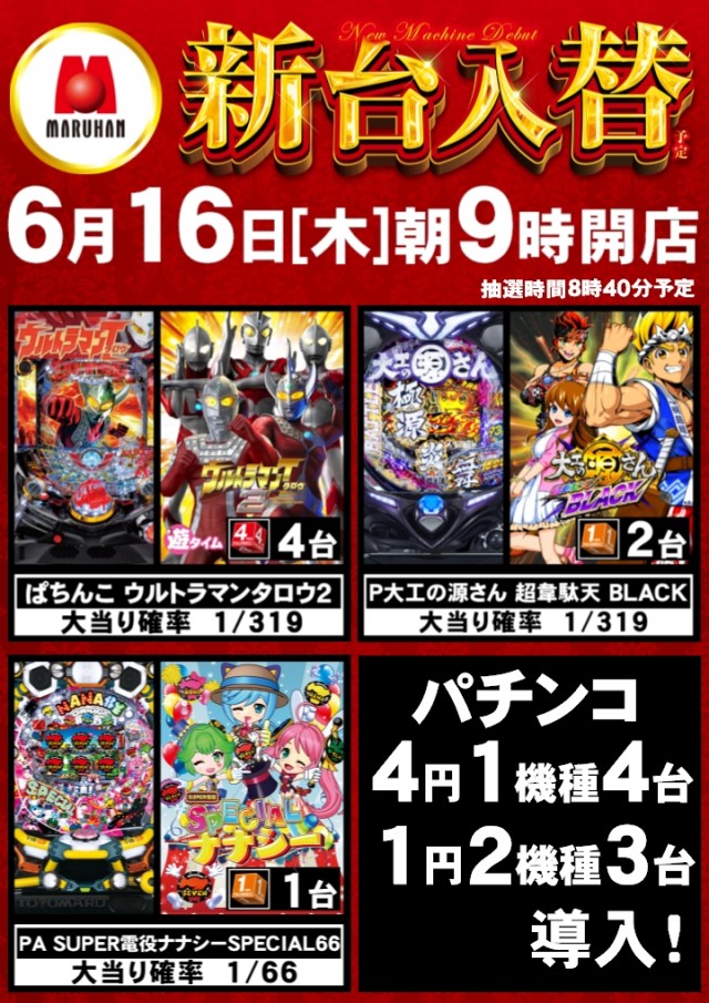 6月16日[木] 【新台入替】予定です!!