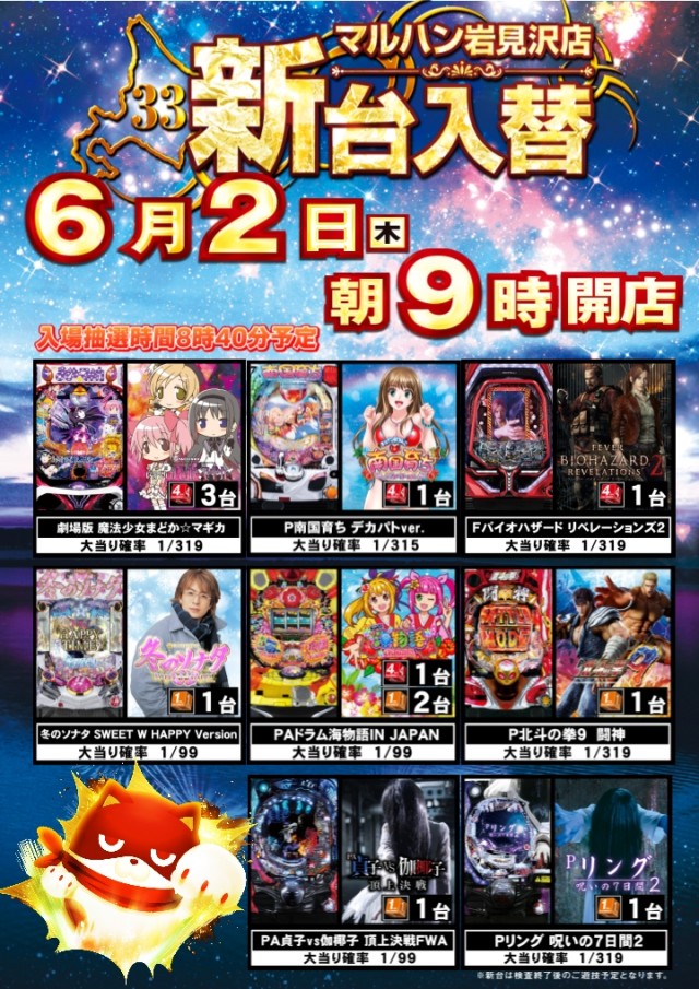6月2日[木] 【新台入替】予定です!!