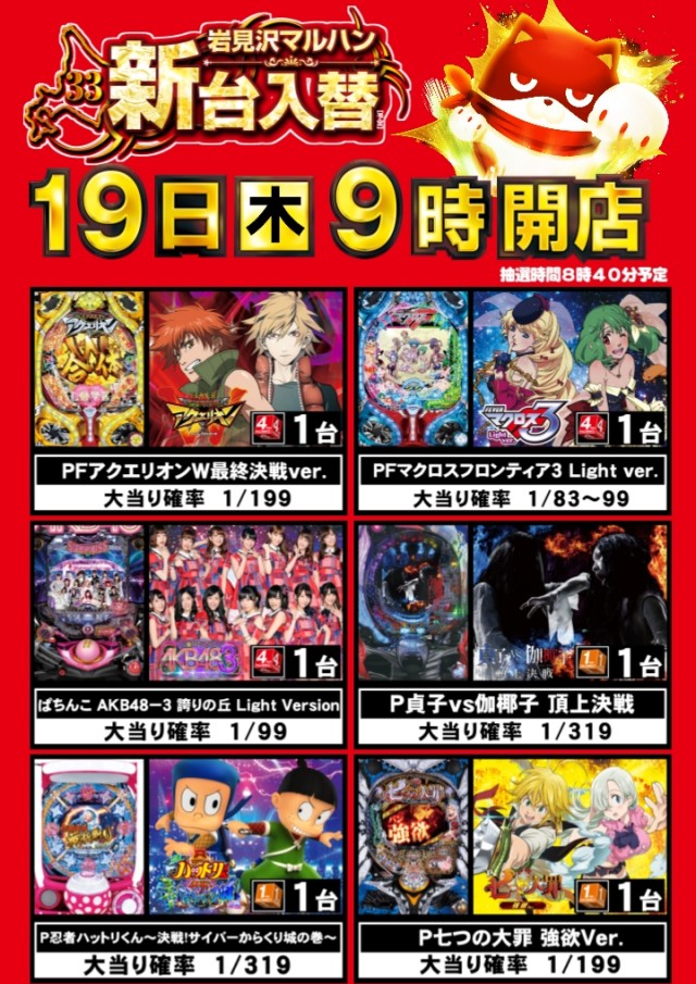 5月19日[木] 【新台入替】予定です!!