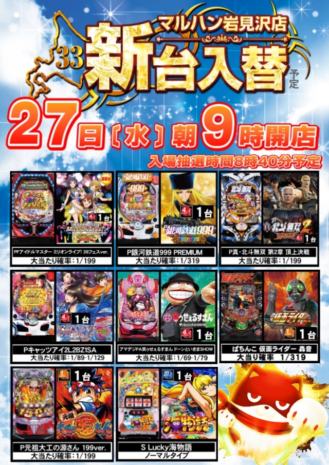 4月27日[水] 【新台入替】予定です!!