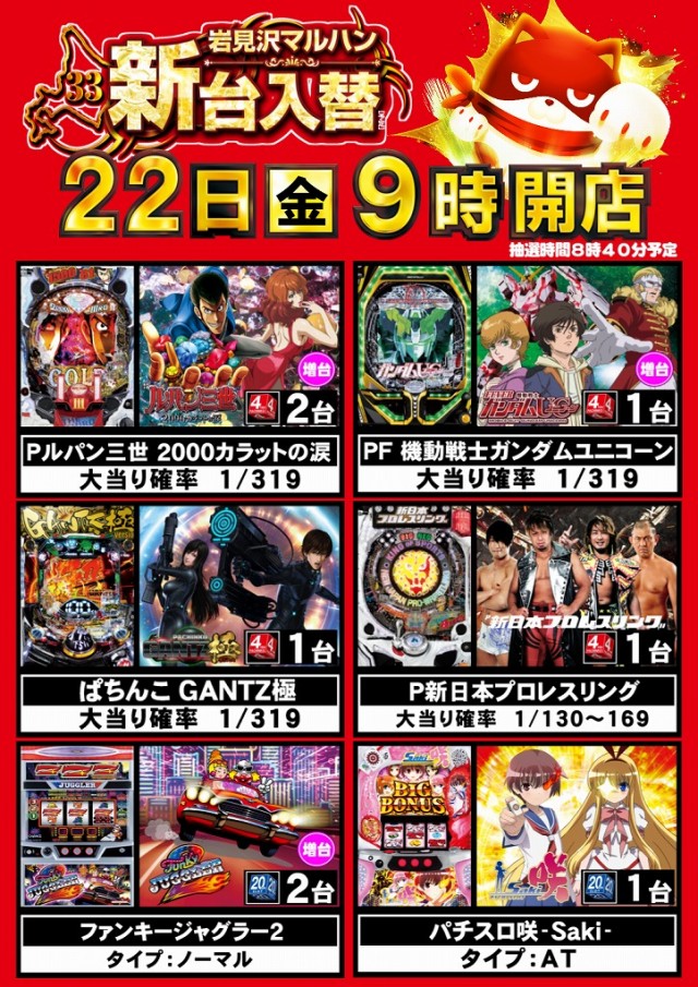 4月22日[金] 【新台入替】予定です!!