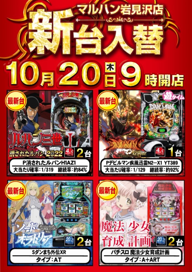 10月20日[木] 【新台入替】です!!