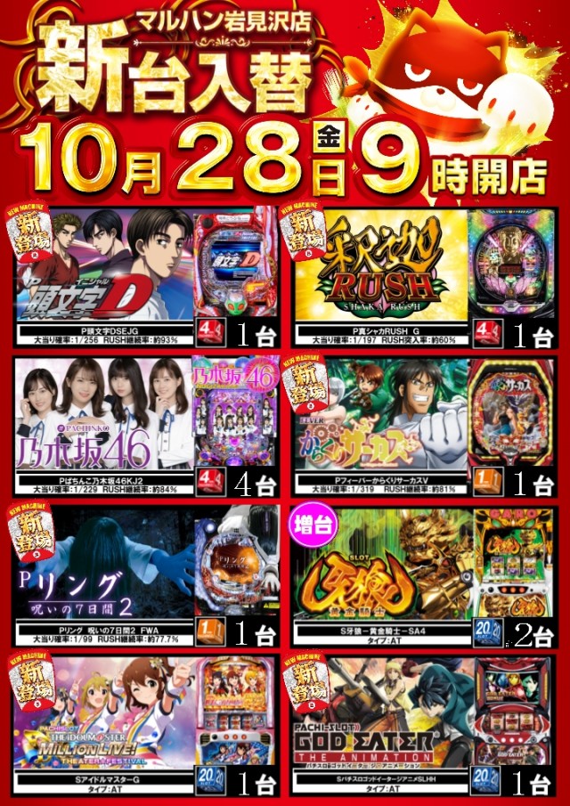 10月28日[金] 【新台入替】です!!
