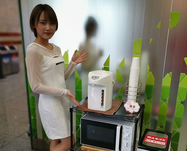 電子レンジや自由に飲めるあたたかいお茶、テーブル席があるので、食事も気軽にとれるように思いましたヽ(>▽<)ノ