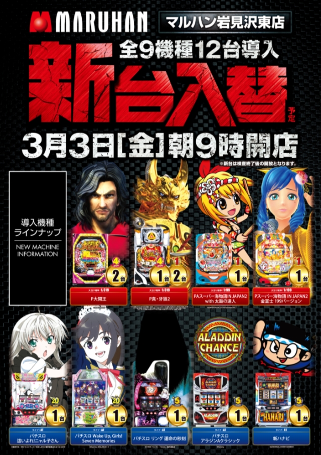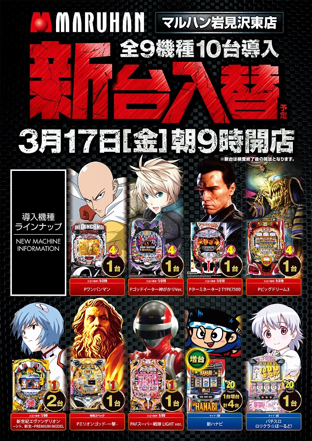 3月17日(金)ファン感謝デー&新台入替!朝9時開店