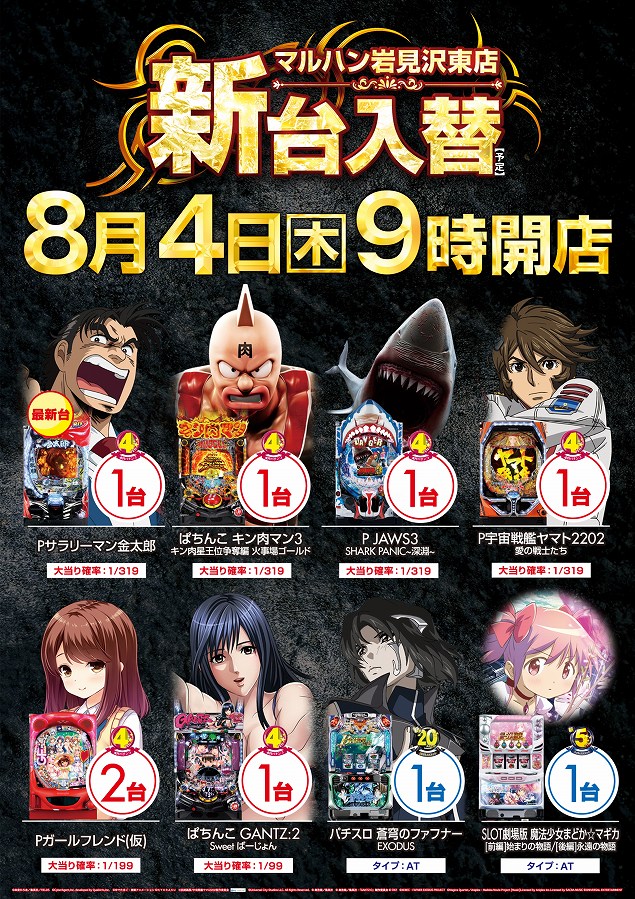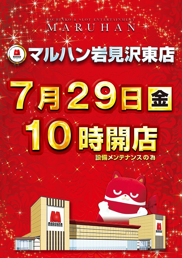 7月29日(金)新台入替!10時開店!設備メンテナンスの為