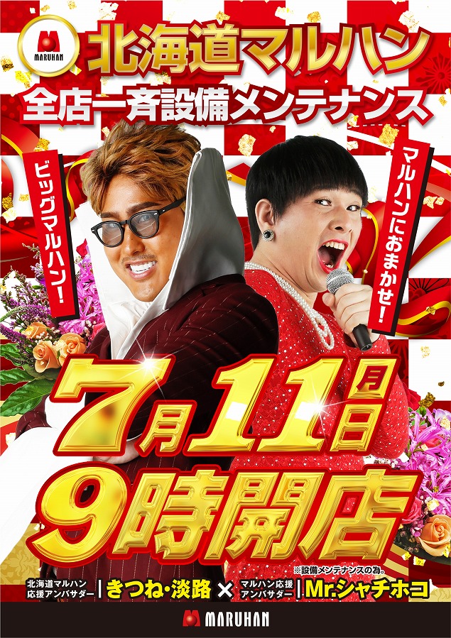 11日(月)9時開店! 全店一斉設備メンテナンスの為