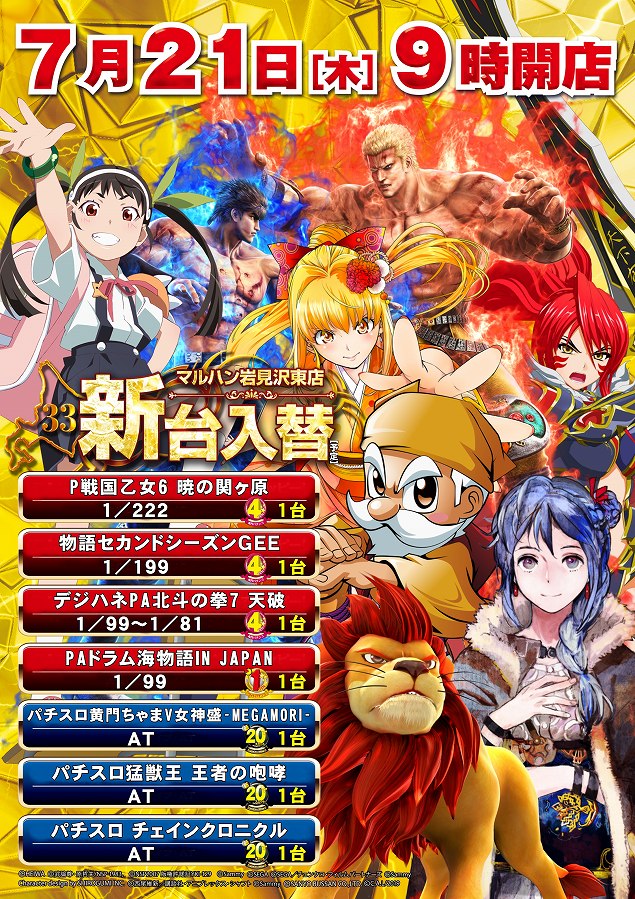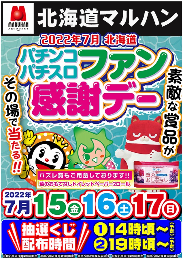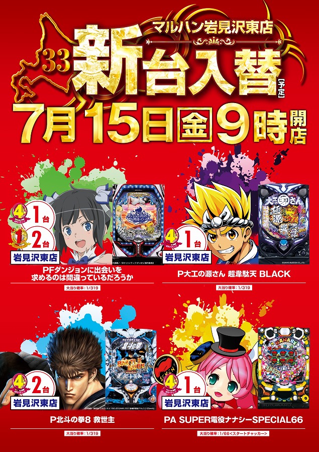 7月15日(金)ファン感謝デー&新台入替!朝9時開店