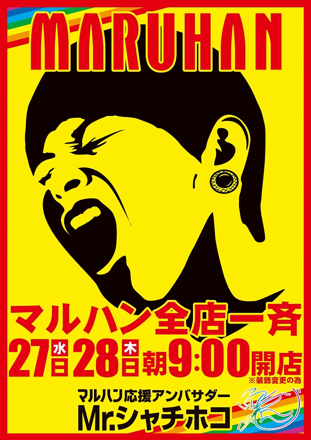 22日(金)9時開店! 全店一斉設備メンテナンスの為