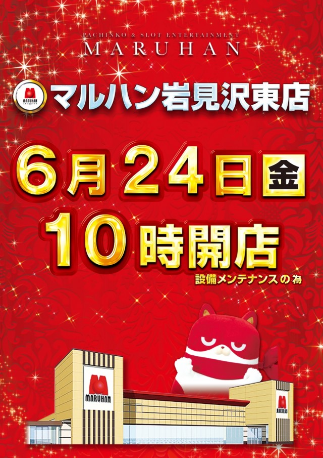 6月25日(土)9時開店! 全店一斉設備メンテナンスの為