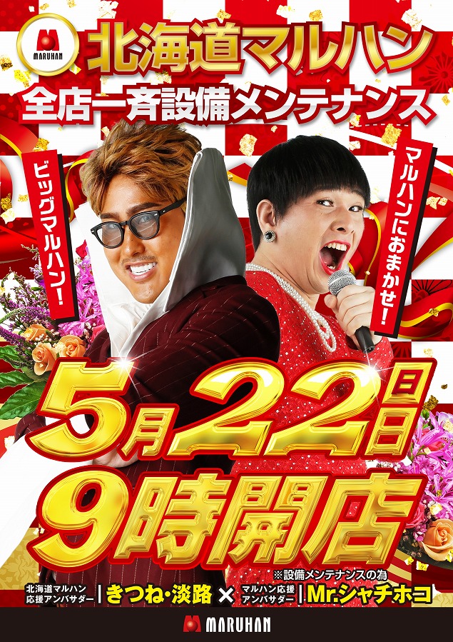 5月17日(火) 9時開店 マルハン全店一斉装飾変更の為