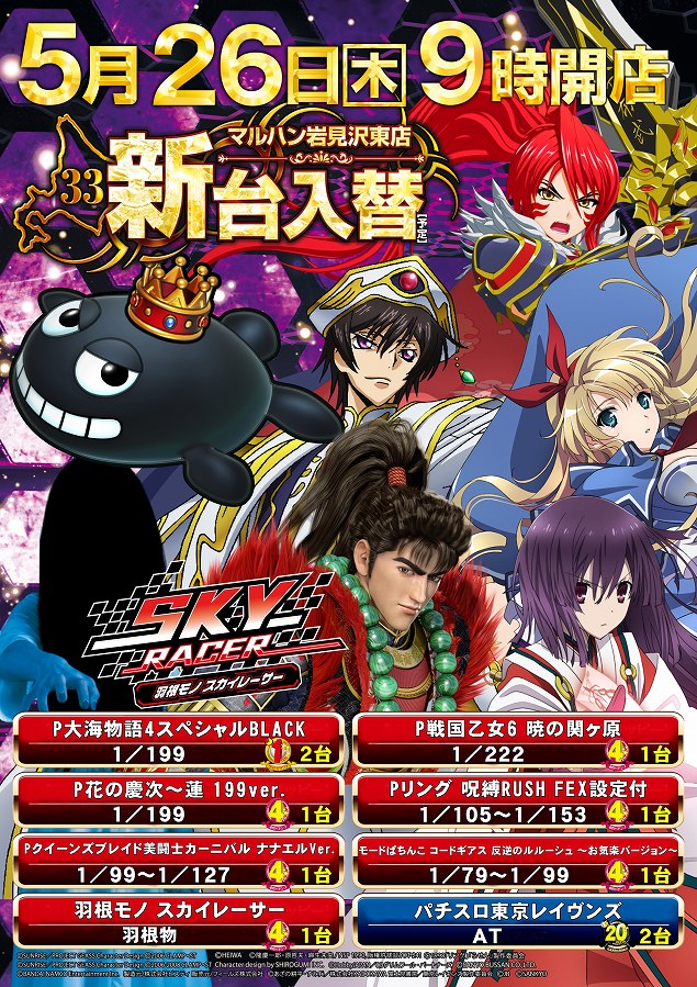 5月26日(木)新台入替 朝9時開店!