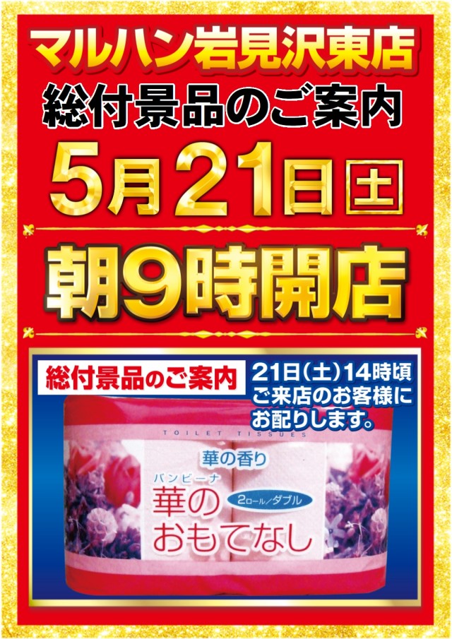 5月21日(土)【総付景品配布】朝9時開店!