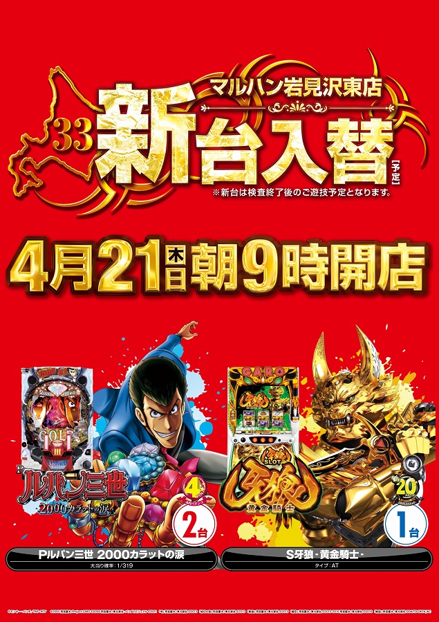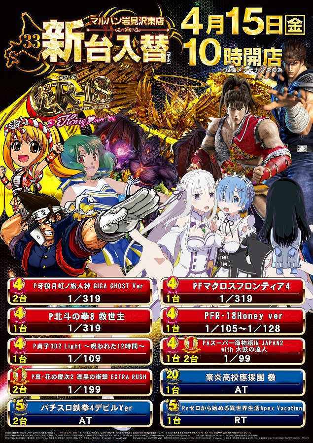 4月15日[金] 新台入替10時開店! 設備メンテナンスの為