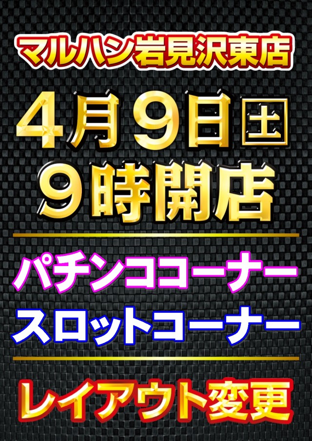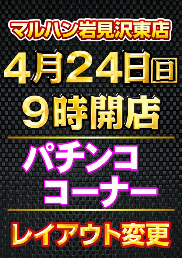4月24日[日] 9時開店 パチンコレイアウト変更!