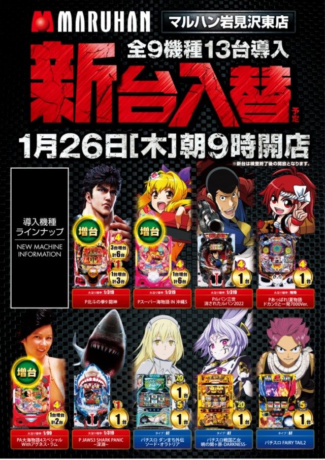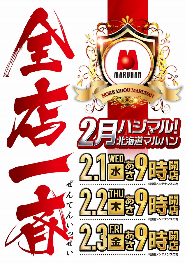 2月2日[木] 9時開店! ※全店一斉設備メンテナンスの為
