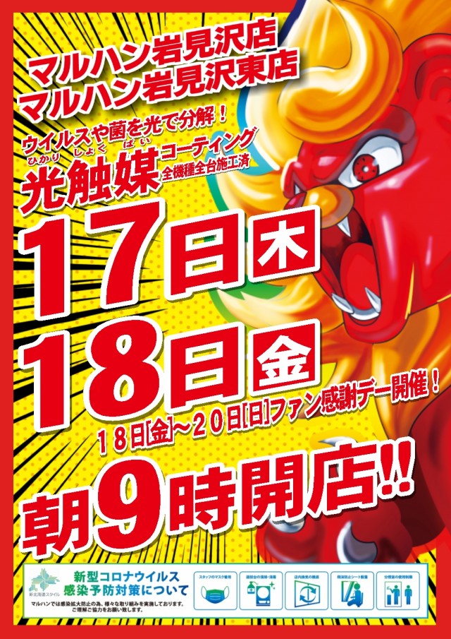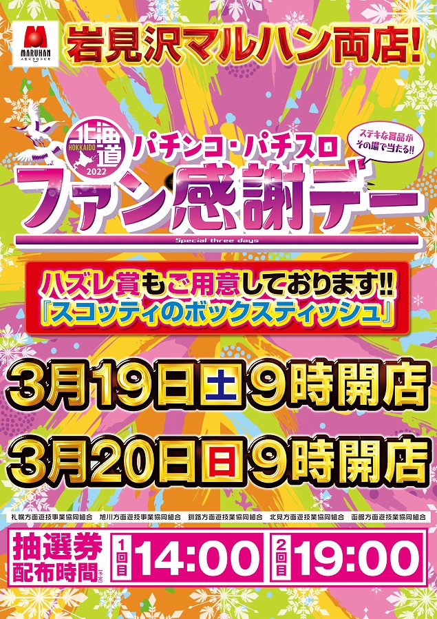 【岩見沢マルハン両店】3月17日(木) 朝9時開店!