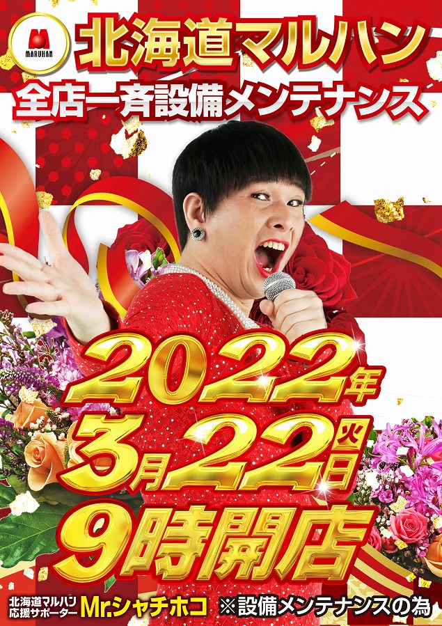 3月22日[火] 9時開店!全道一斉設備メンテナンス