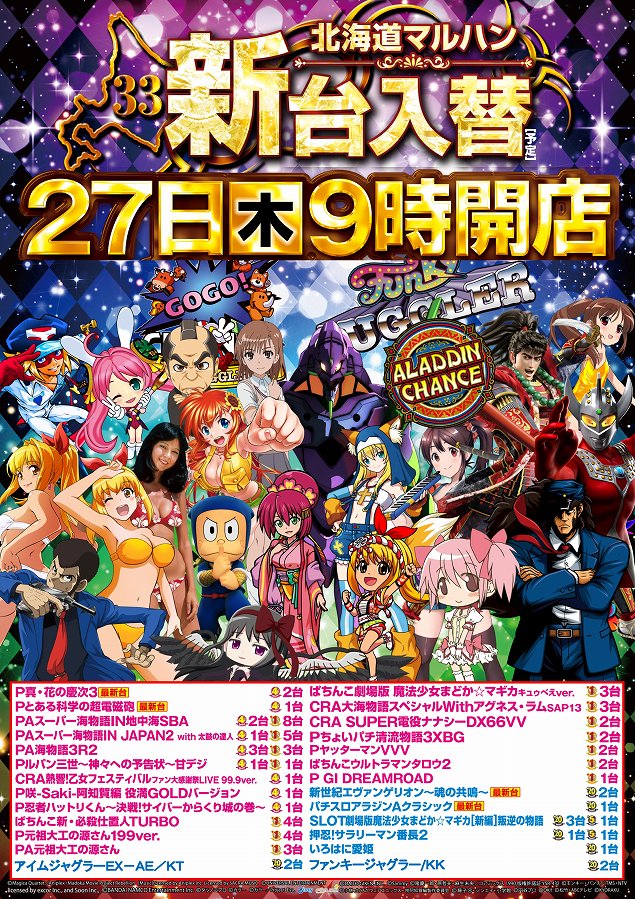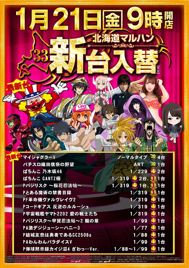 2月4日(金) 11時開店 新台入替34機種77台導入予定!