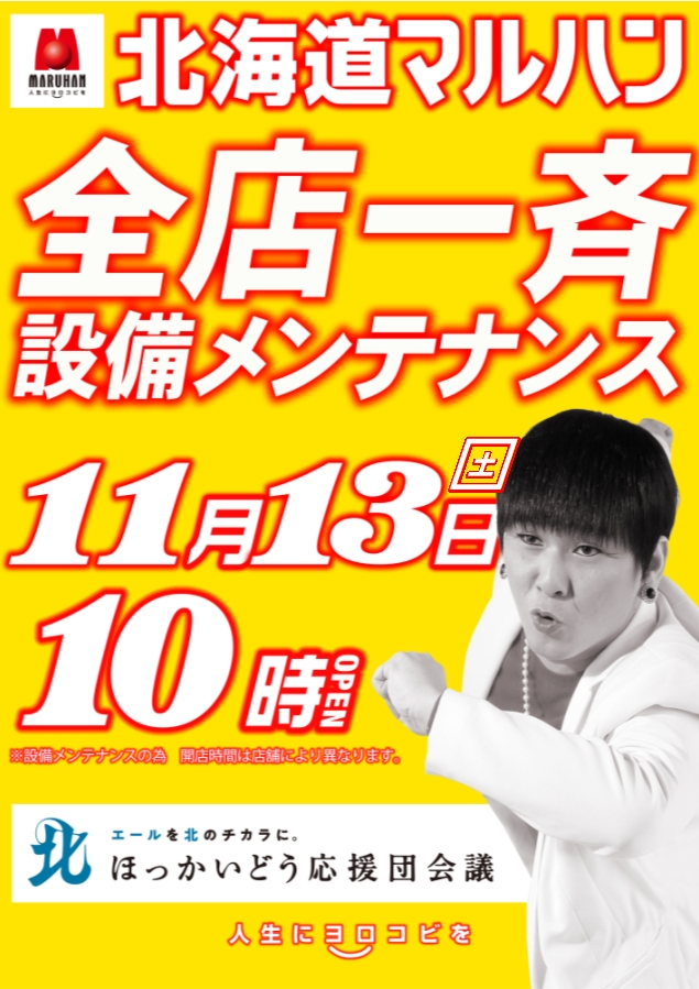 11月3日(水)10時開店※北海道全店一斉設備メンテナンス