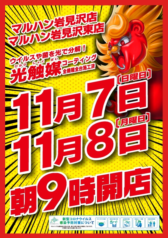 【岩見沢マルハン両店】11月7日(日) 朝9時開店!