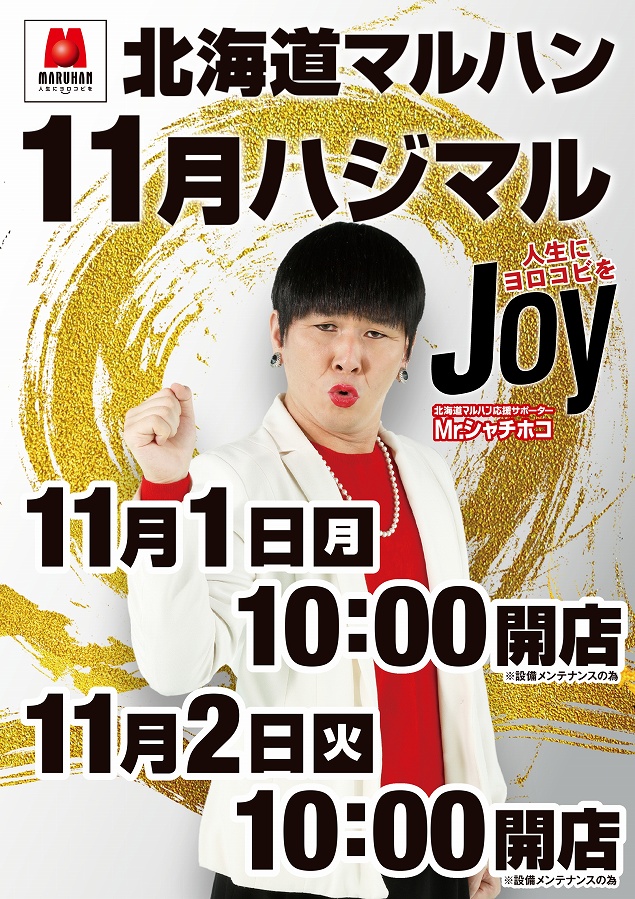 11月2日(火)10時開店※北海道全店一斉設備メンテナンス