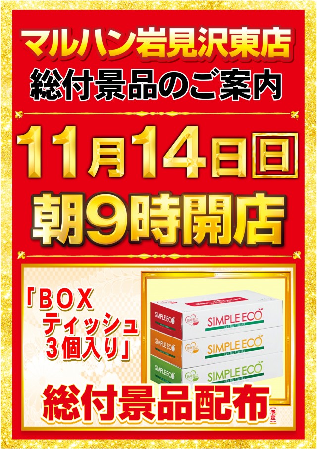 11月14日(日) 総付景品配布 9時開店!
