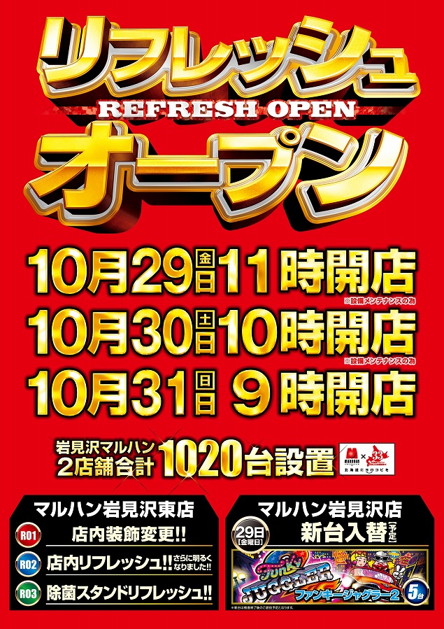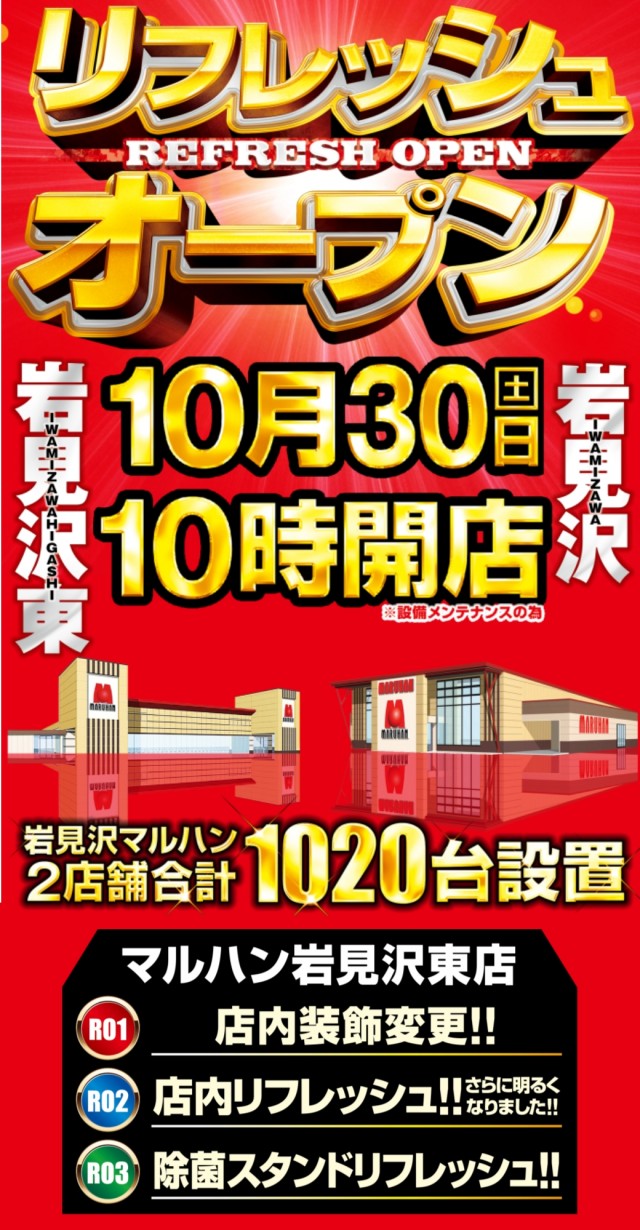 岩見沢マルハン両店 リフレッシュ!! 11時開店!!