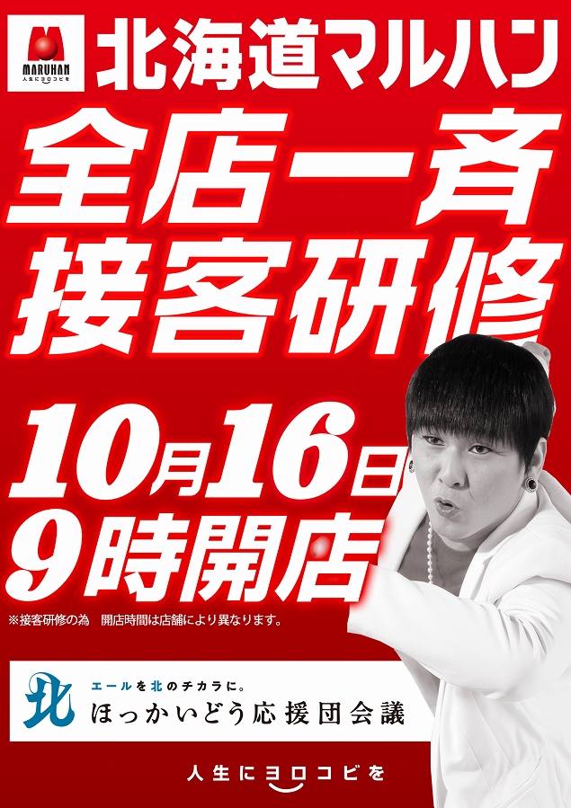 10月16日(土)朝9時開店 北海道マルハン全店一斉接客研修