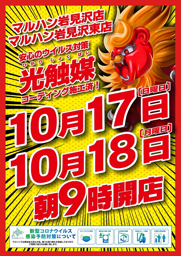 岩見沢東店 10月24日 朝9時開店(総付景品配布します!)
