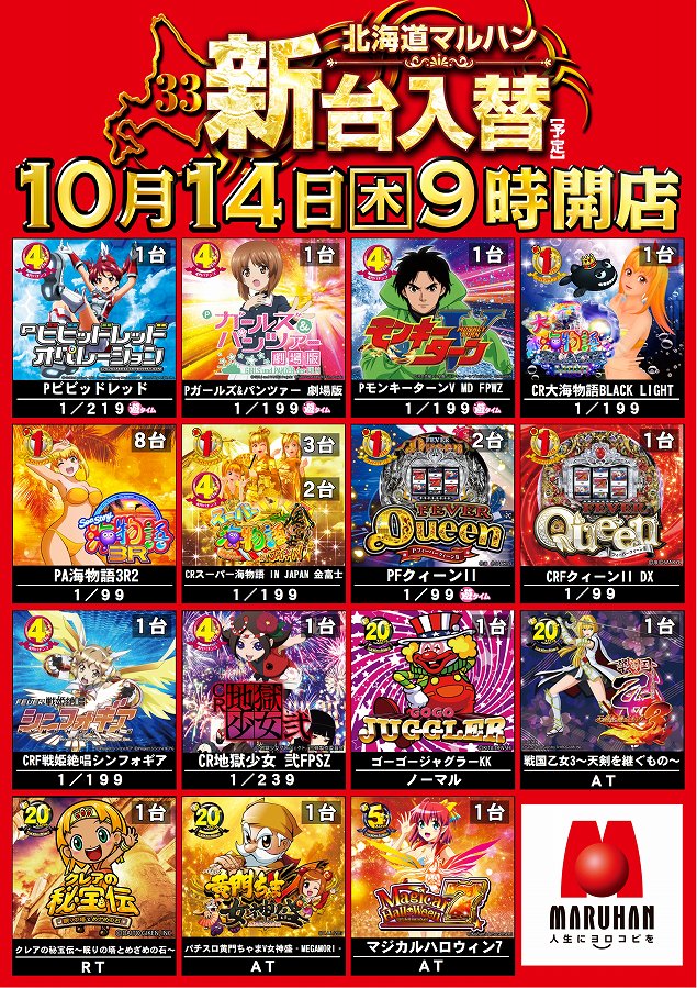 10月11日(月)朝9時開店!北海道マルハン全店一斉接客研修