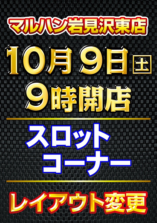 10月9日(土)朝9時開店!スロットコーナーレイアウト変更