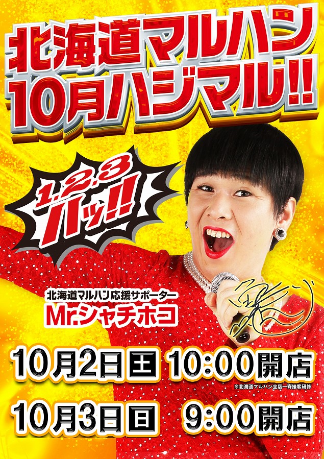 10月2日(土)10時開店!※北海道全店一斉接客研修の為